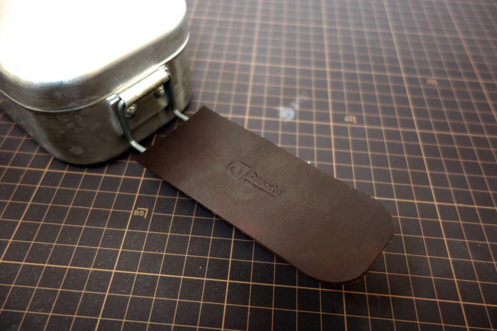 レザーの持ち手が無機質なメスティンのアクセントとして効いてます。