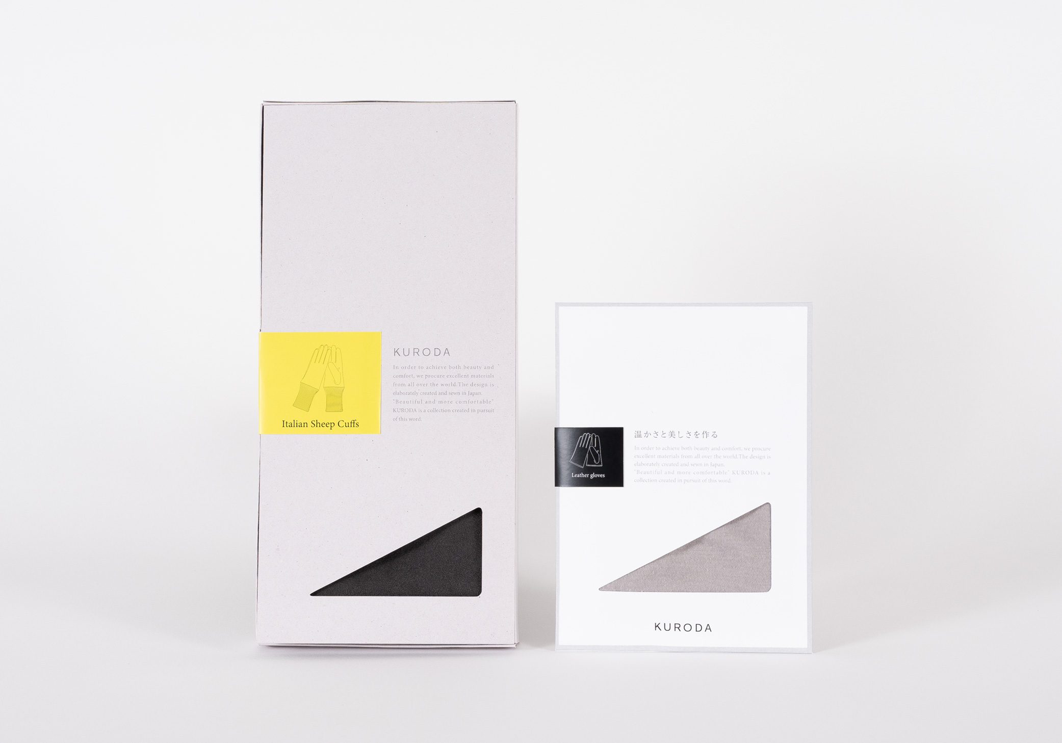 雑貨店での販売を想定し、商品の特性に合わせた手袋用ギフトケースと封筒パッケージを制作しました。